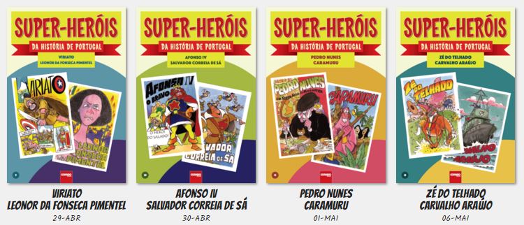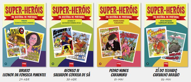 Olá! Hoje trago uma pequena novidade para vocês, algo do qual tomei conhecimento muito recentemente. De 9 de Abril a 8 de Maio o Correio da Manhã vai distribuir de forma gratuita a coleção Super-heróis da história de Portugal. Estes livros de banda desenhada contam com o texto de António Gomes de Almeida e a ilustração de Artur Correia.